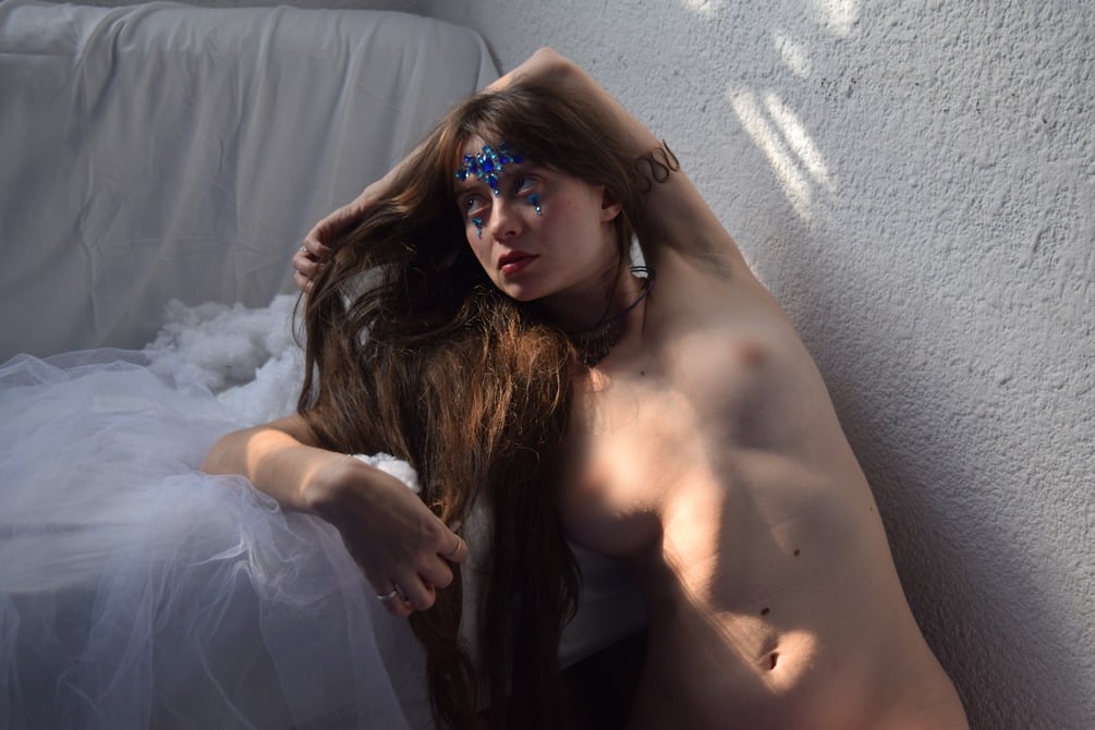 This set is very special because I made it with Lluvia Ramírez, a very experimented photographer and super friend of mine. Together we found a space in time to create together and it is always very special and beautiful to create with your loved ones. (Not to mention my cats helped a lot).
